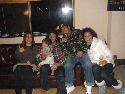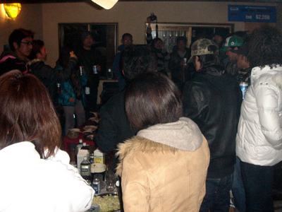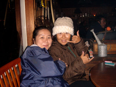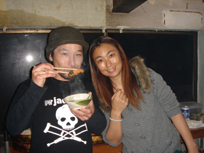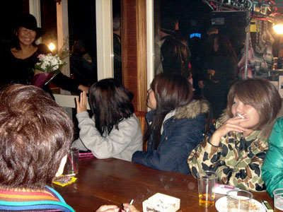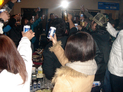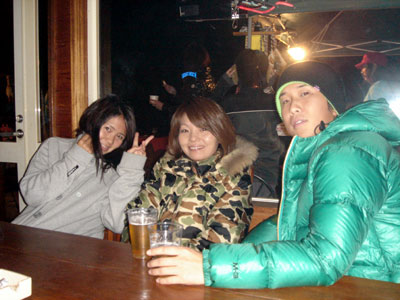 かんぱ〜い!後ろでカメラマンクミが密かにポーズしています。ふふふ