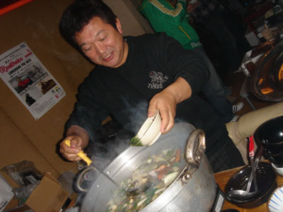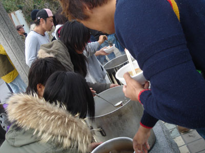 ビーチクリーンの後は、これまた恒例のイモ煮がまっています!